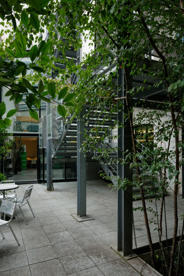 Des cafétérias ont été pensées à tous les étages, et une cuisine équipée est à disposition des employés. Pour le bien-être de ses collaborateurs, VIGUIER a adopté un design biophilique pour ses locaux avec la présence de nichoirs, de ruches, d’arbres de hautes tiges, d’aquarium … sans oublier l’aménagement d’espaces extérieurs pour davantage de confort et de convivialité.