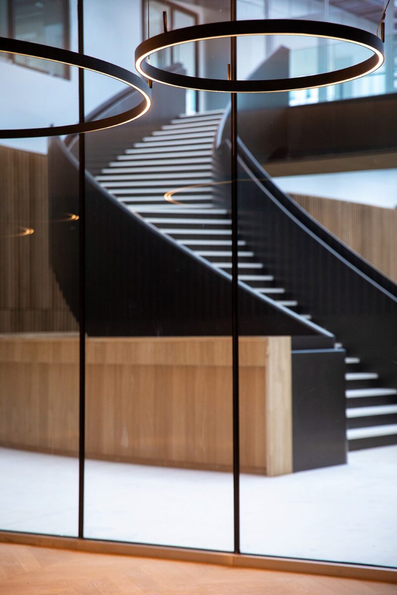 Au niveau du sol, un ensemble de parois vitrées donnant sur les rues perpendiculaires au boulevard de la Défense ouvre l’Archipel sur la ville et permet d’accéder aux fonctions partagées. Ces structures fines en béton armé coulé en place ont dû être fondées sur des pieux ancrés profondément dans le sous-sol.