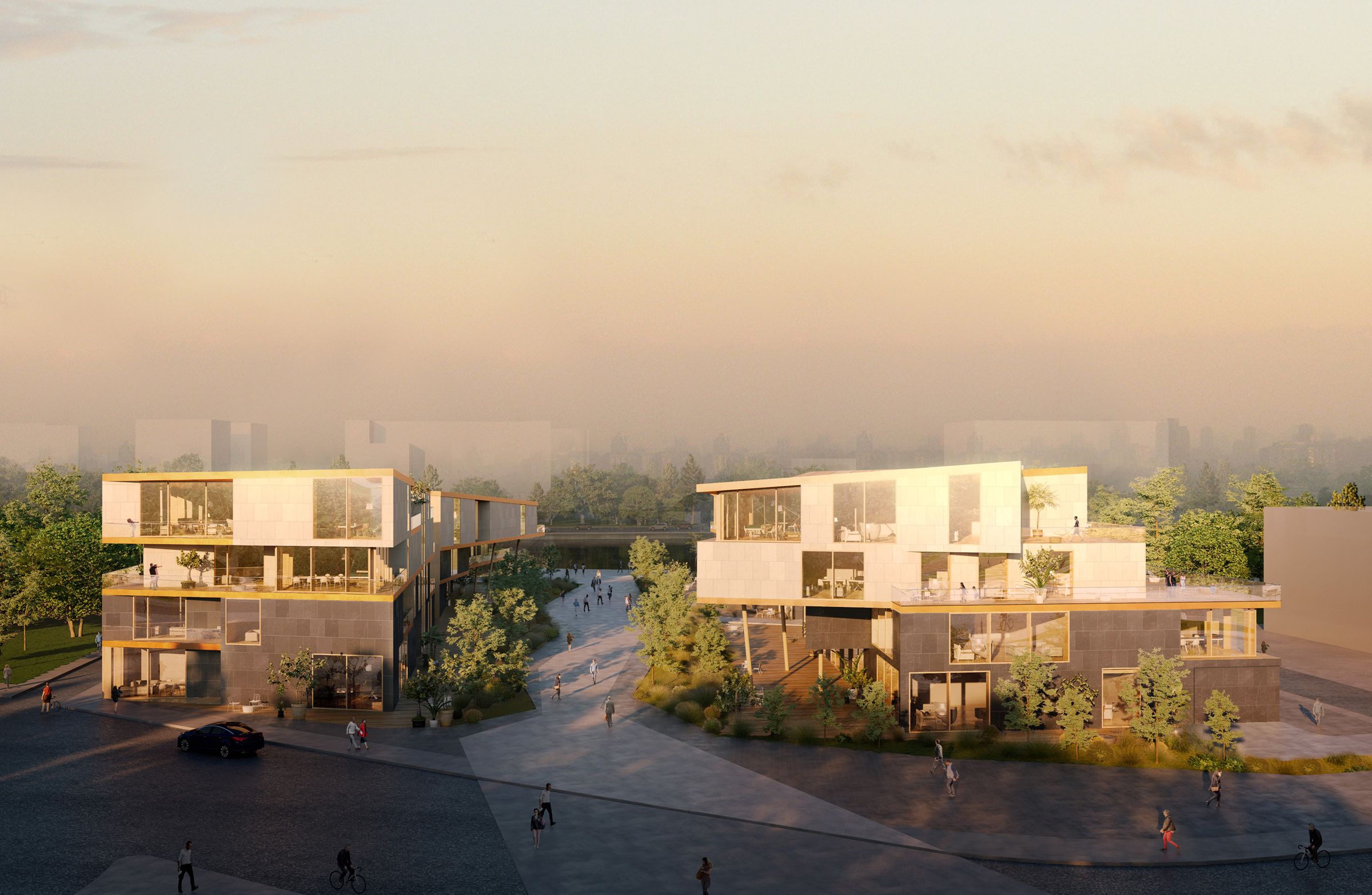 Les deux formes principales des bâtiments sont inclinées dans différentes positions pour permettre une variété de vues et d’orientations, des unités d’habitation vers l’extérieur.