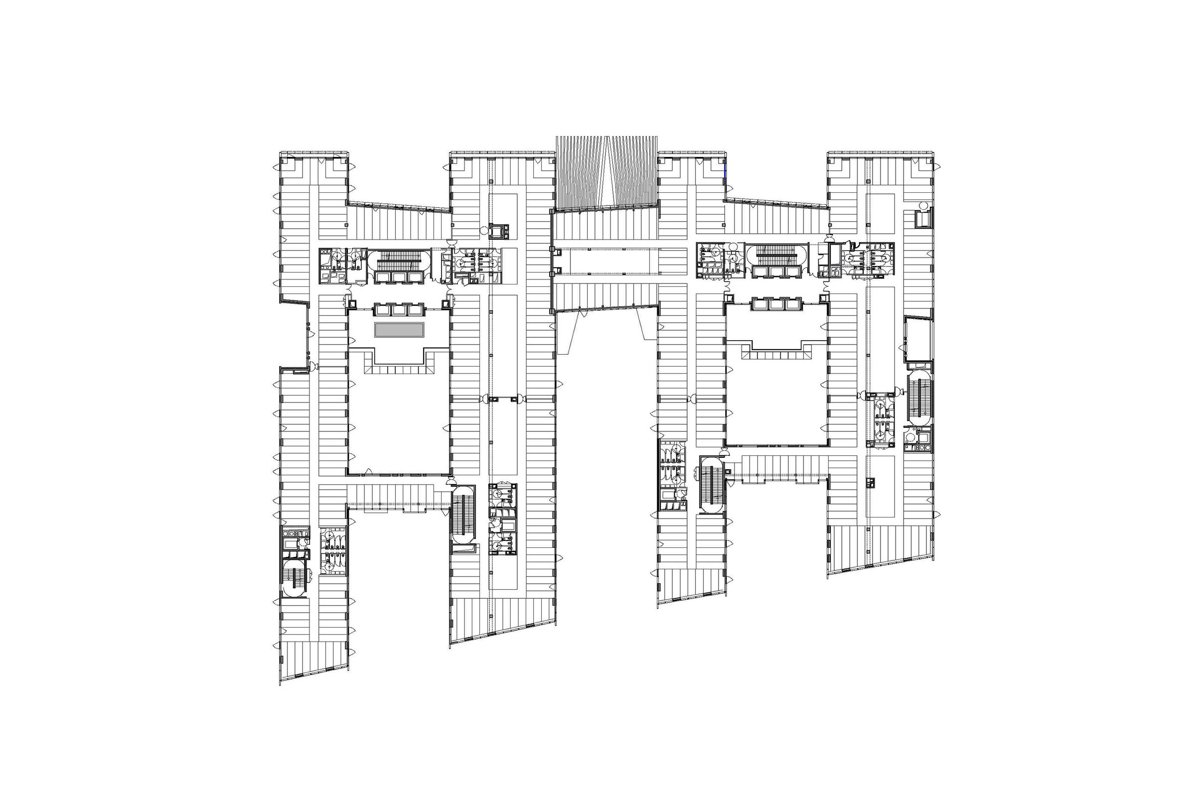 Ce bâtiment à usage de bureaux se développe sous la forme de quatre volumes organisés en peigne. Leurs longs pans s’étendent sur un axe nord/sud permettant ainsi des échappées visuelles ainsi que des pénétrations en cœur d’îlot.